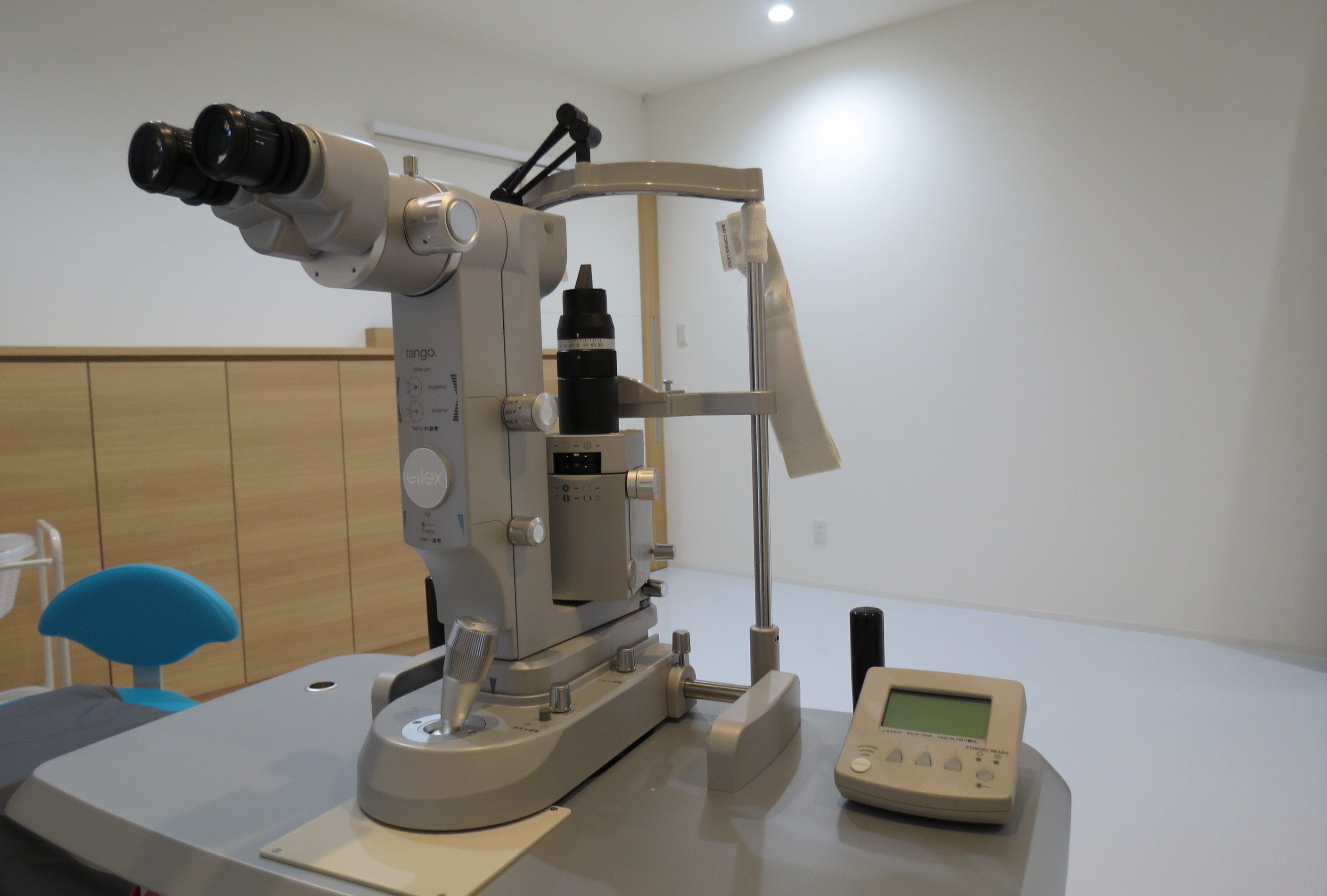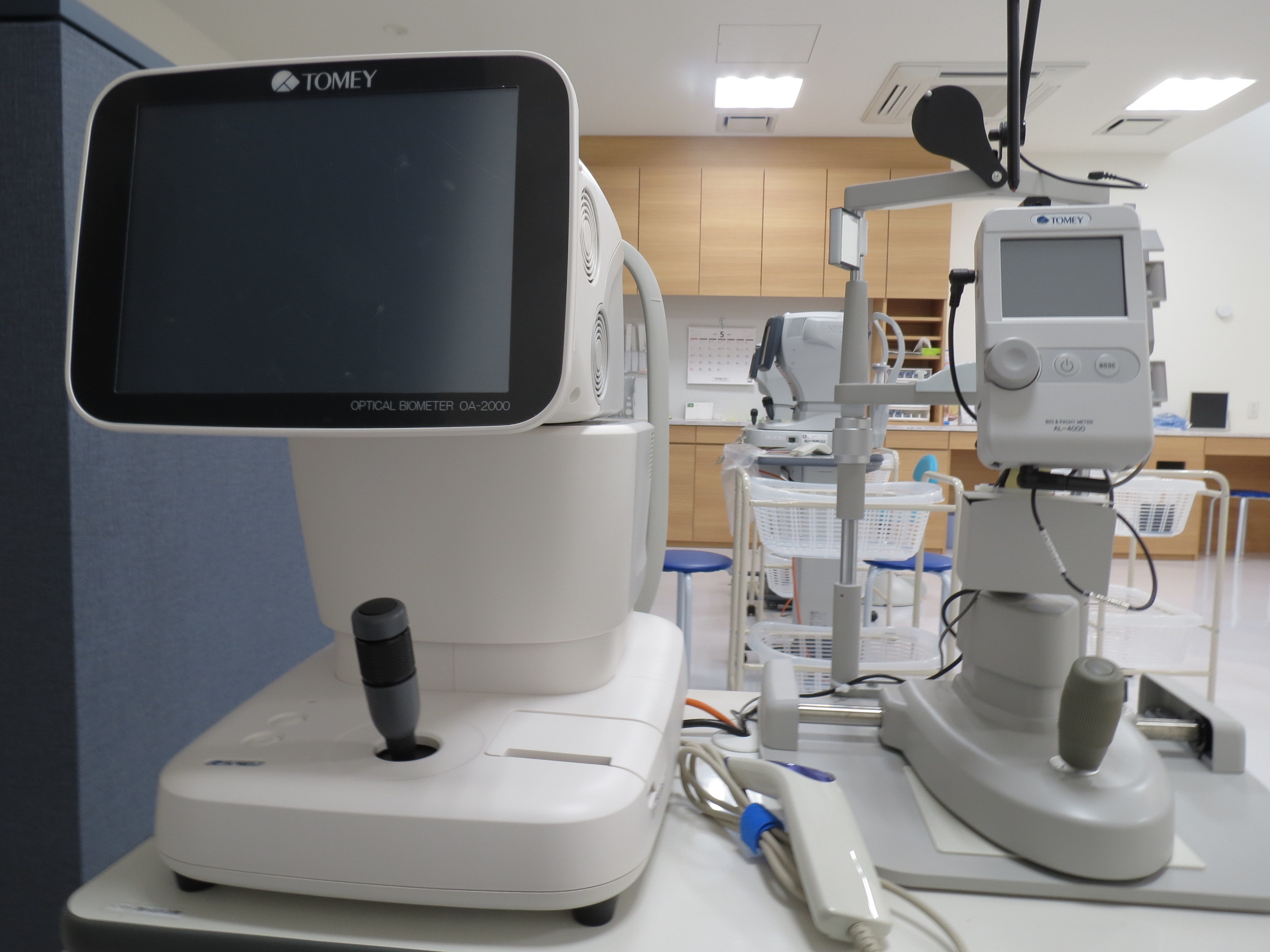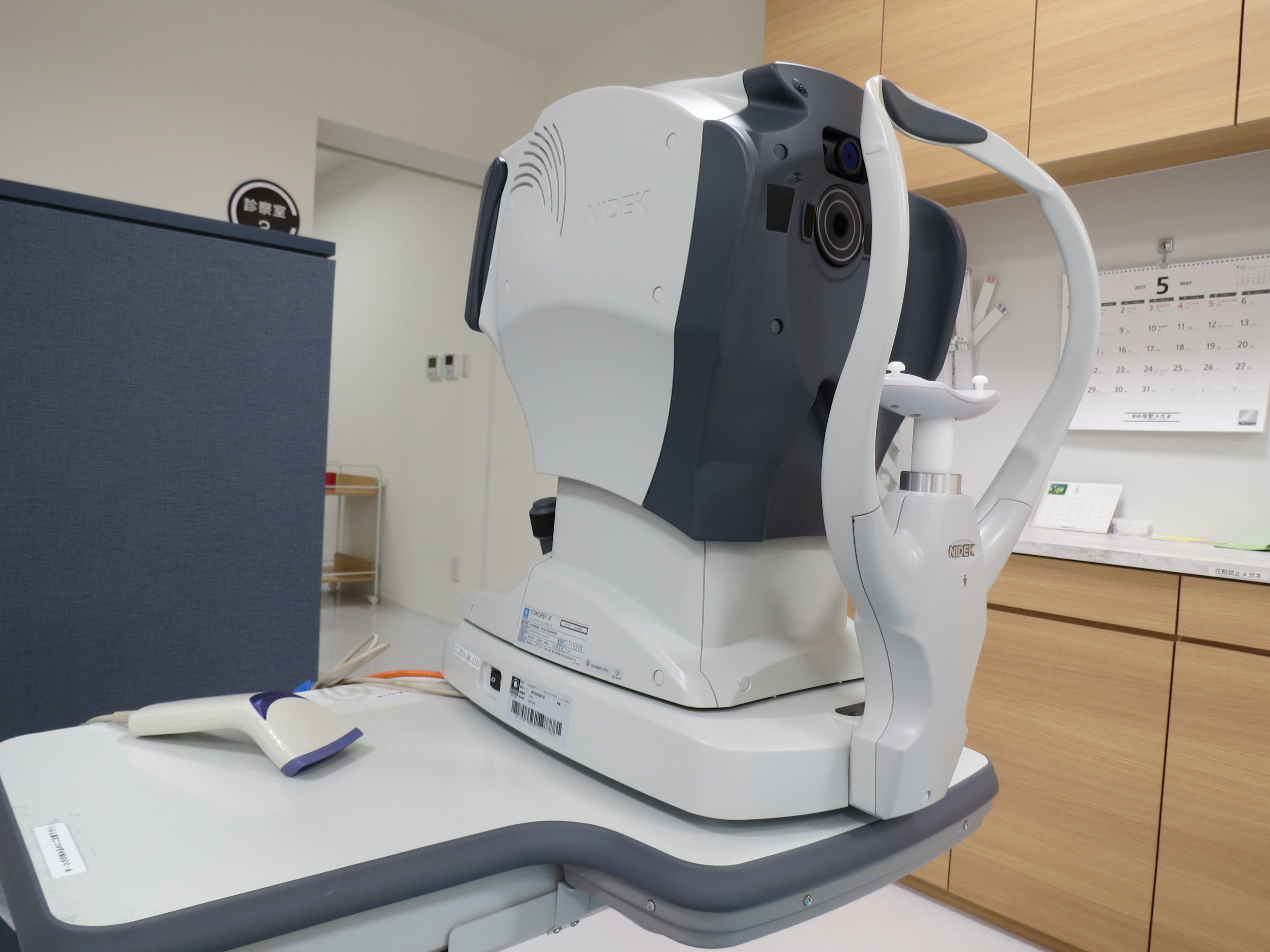 眼の長さを測定する装置です。白内障手術の際、濁った水晶体を取り除いて代わりに眼内レンズ挿入して屈折の調整をしますが、患者様に合わせた眼内レンズの屈折度数計算をします。